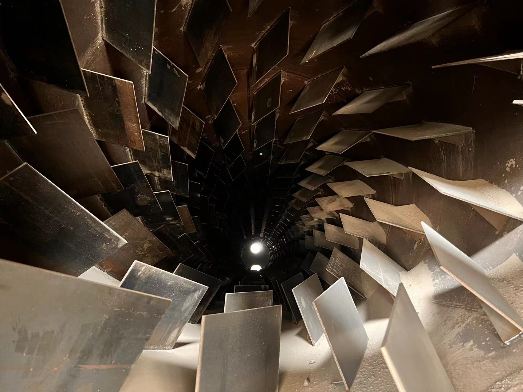 濕物料從干燥機一端投入后,在內筒均布的抄板器翻動下,物料在干燥器內均勻分布與分散,且與并流( 逆流 )的熱空氣充分接觸 ,加快了干燥傳流、傳質推動力。在干燥過程中,物料在帶有傾斜的抄板和熱氣流作用下,可調控地運動至干燥機另一端星形卸料閥排出成品。