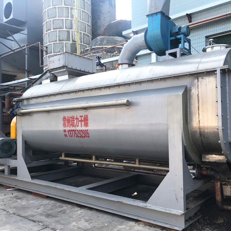 產(chǎn)品描述:空心軸上密集排列著楔型中空漿葉,熱介質(zhì)經(jīng)空心軸流經(jīng)漿葉。單位有效容積內(nèi)傳熱面積很大,熱介質(zhì)溫度從-40℃到320℃,可以是水蒸汽,也可以是液體型:如熱水、導(dǎo)熱油等。間接傳導(dǎo)加熱,沒有攜帶空氣帶走熱量,熱量均用來加熱物料。