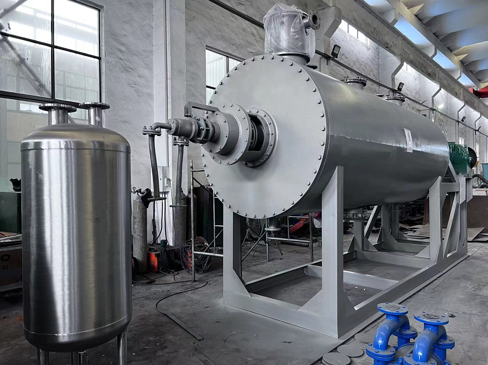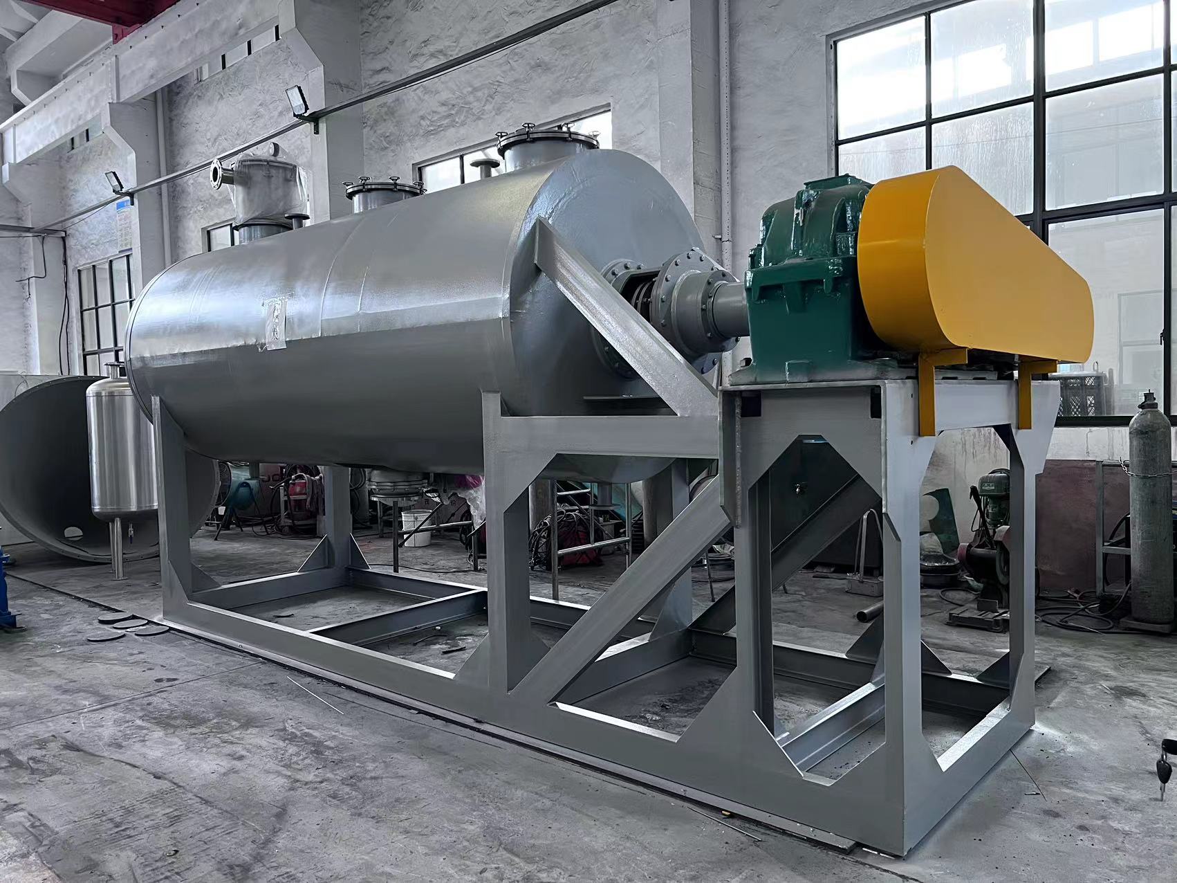 真空耙式干燥機機身中間為圓柱形,器身內外分為三層,中間夾套加熱介質可以是導熱油循環(壓力<0.3mpa表壓)或蒸汽(壓力<0.3mpa表壓),外層用超細玻璃棉,保溫效果很好,耗能很少,內層投放物料,適用于有被氧化危險的物料和熱敏性物料的干燥,在干燥過程中不破壞晶體狀的物料,限制金屬離子的物料以及要求排出揮發物(或有*物質)須回收(或有*性)的物料,則更能顯示了它的優越性。