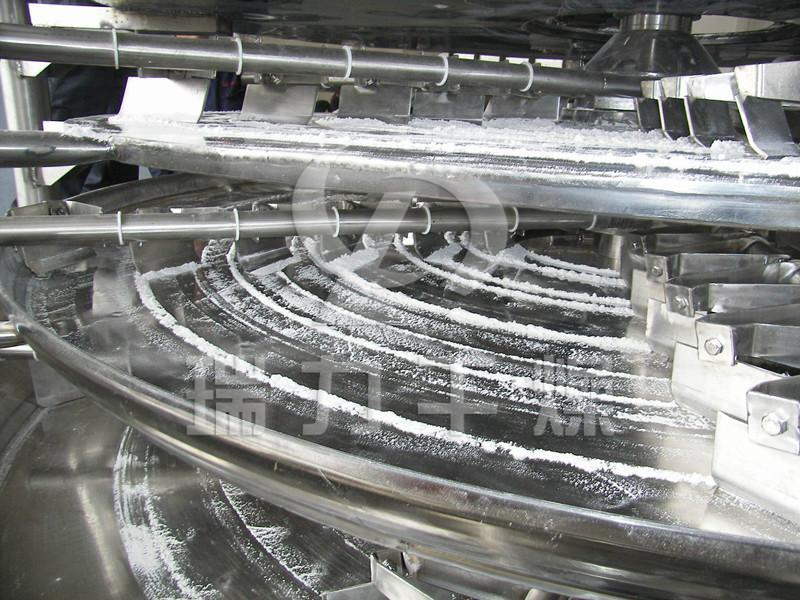 二、頭孢曲松鈉專用盤式干燥機概述:頭孢曲松鈉專用盤式干燥機是一種高效的傳導型連續干燥設備。其獨特的結構和工作原理決定了它具有熱效率高、能耗低,占地面積小、配置簡單、操作控制方便、操作環境好等特點,廣泛適用于化工、醫藥、農藥、食品、飼料、農副產品加工等行業的干燥作業。在各行業使用實踐中深受好評。現生產制造常壓、密閉、真空三大類型、1200、1500、2200、3000四種,A(碳鋼)、B(接觸物料部分均布不銹鋼)、C(在B的基礎上,增加蒸汽管路、主軸及支架為不銹鋼,筒體和蓋頂內襯不銹鋼)。三種材質,干燥面積4~180m 2,共幾百種型號的系列產品,并能提供與之相配套的種輔助設備,可滿足用戶對各種物料進行干燥的需要。