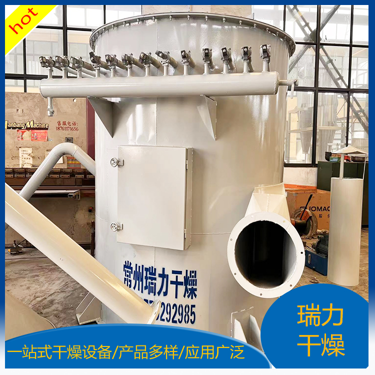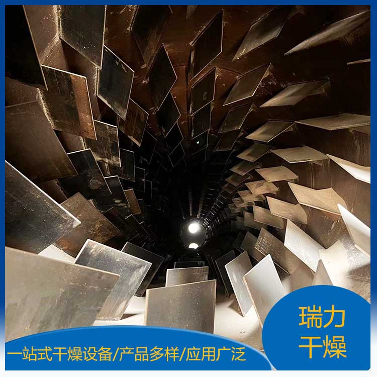 滾筒干燥機的工作過程為:需要干燥處理的料液由高位槽流人滾筒干燥器的受料槽內,由布膜裝置使物料薄薄地(膜狀)附在滾筒表面,滾筒內通有供熱介質,食品工業多采用蒸汽,壓力一般在0.2~6MPa,溫度在 120~150℃之間,物料在滾筒轉動中由簡壁傳熱使其濕分汽化,滾簡在一個轉動周期中完成布膜、汽化、脫水等過程,干燥后的物料由刮刀刮下,經螺旋輸送至成品貯存槽,后進行粉碎或直接包裝。在傳熱中蒸發出的水分,視其性質可通過密閉罩,引入到相應的處理裝置內進行捕集粉塵或排放。